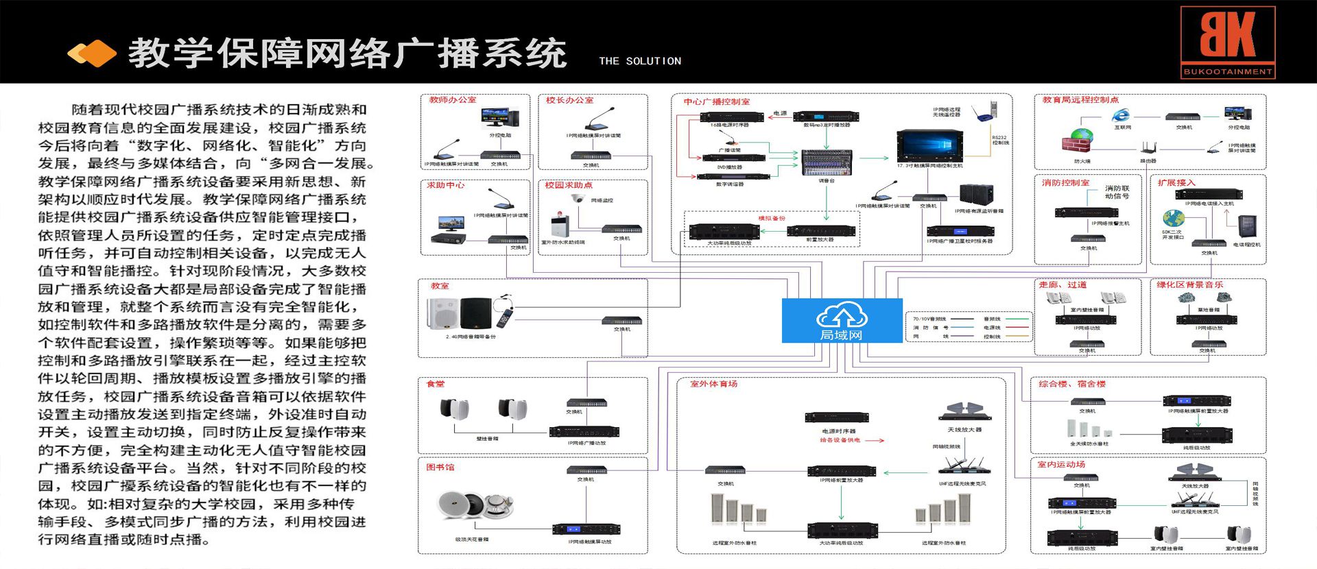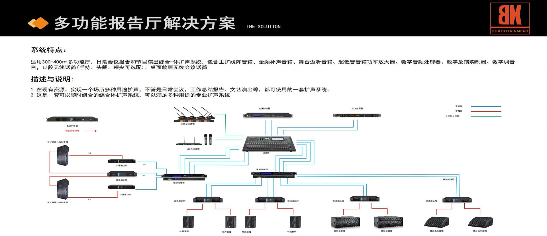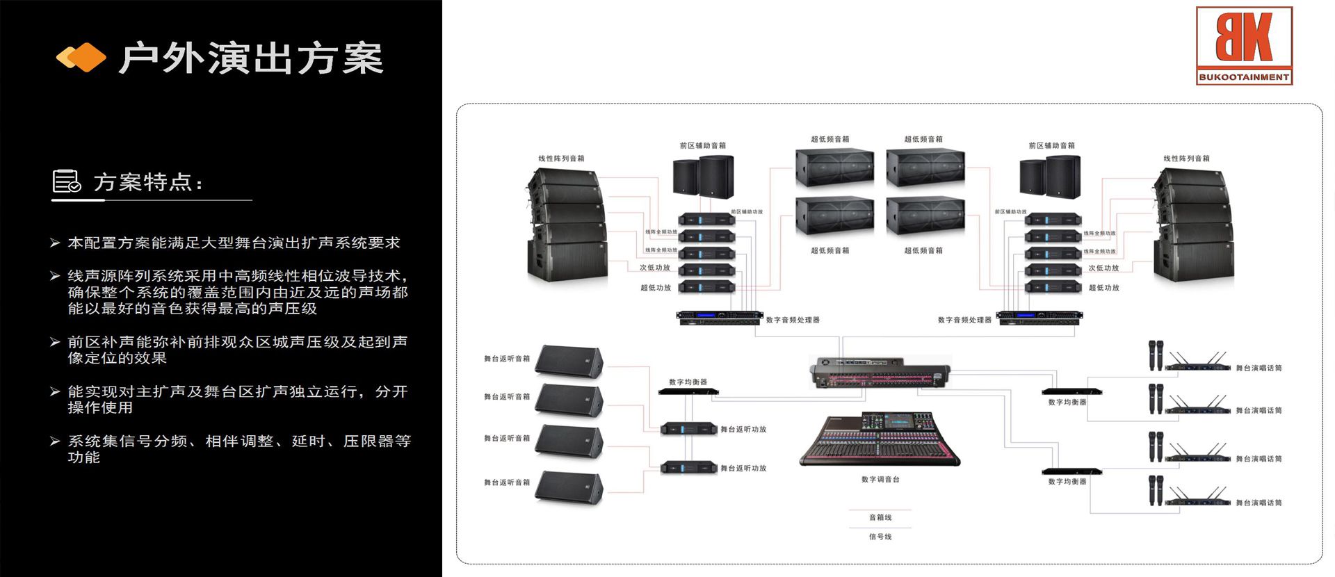 广州市布谷电子有限公司,专注专业音响的研发、生产、销售为一体的生产型企业,拥有自主研发设计的音响品牌“BK AUDIO”和英国授权品牌“INFITI”,企业选用国内外知名喇叭单元并形成长期战略合作伙伴,保证选材一致性、稳定性、安全性。同时展开室内外专业扩声工程及各种娱乐场所音响工程的设计、安装调试、技术支持等服务。